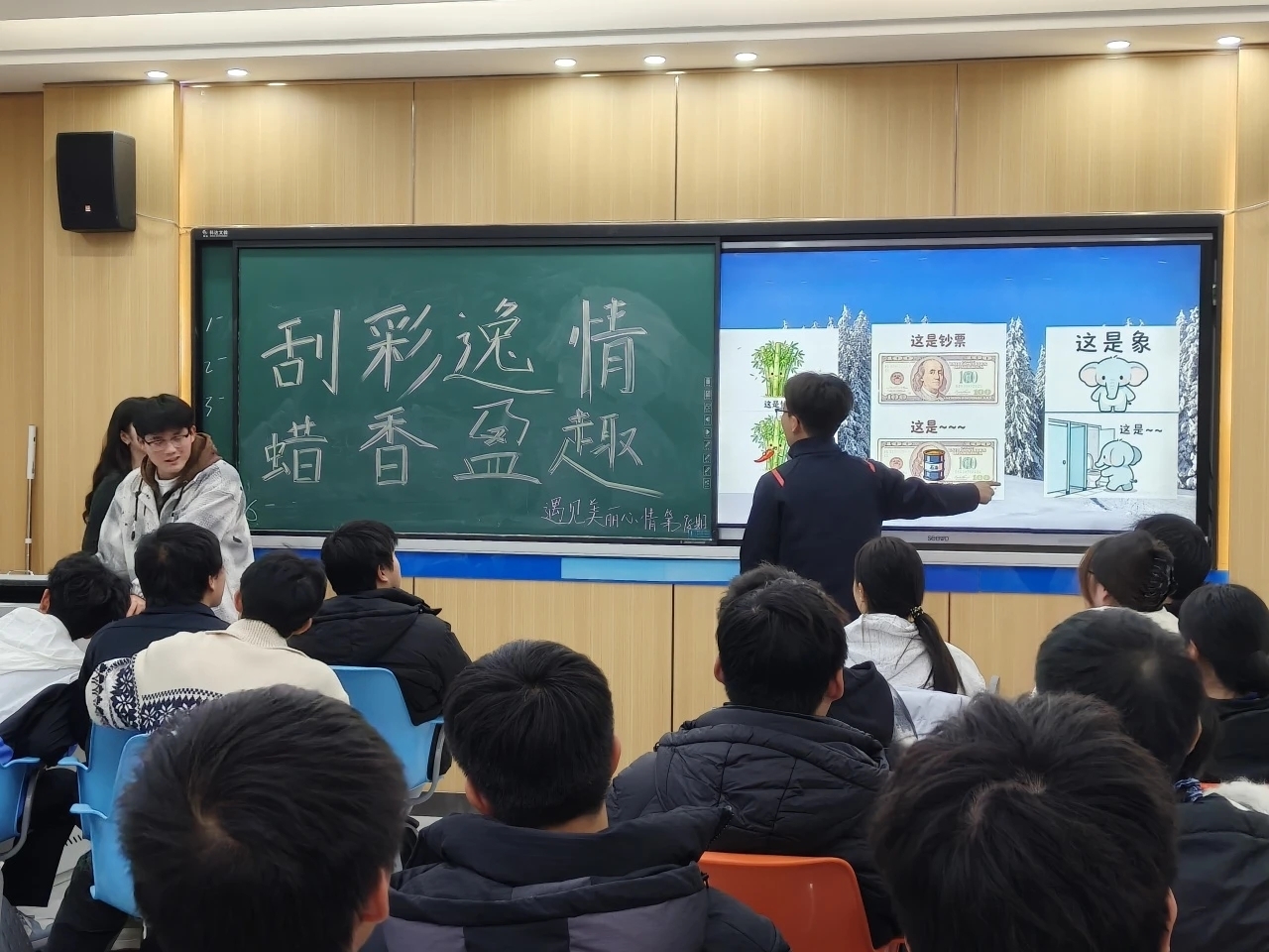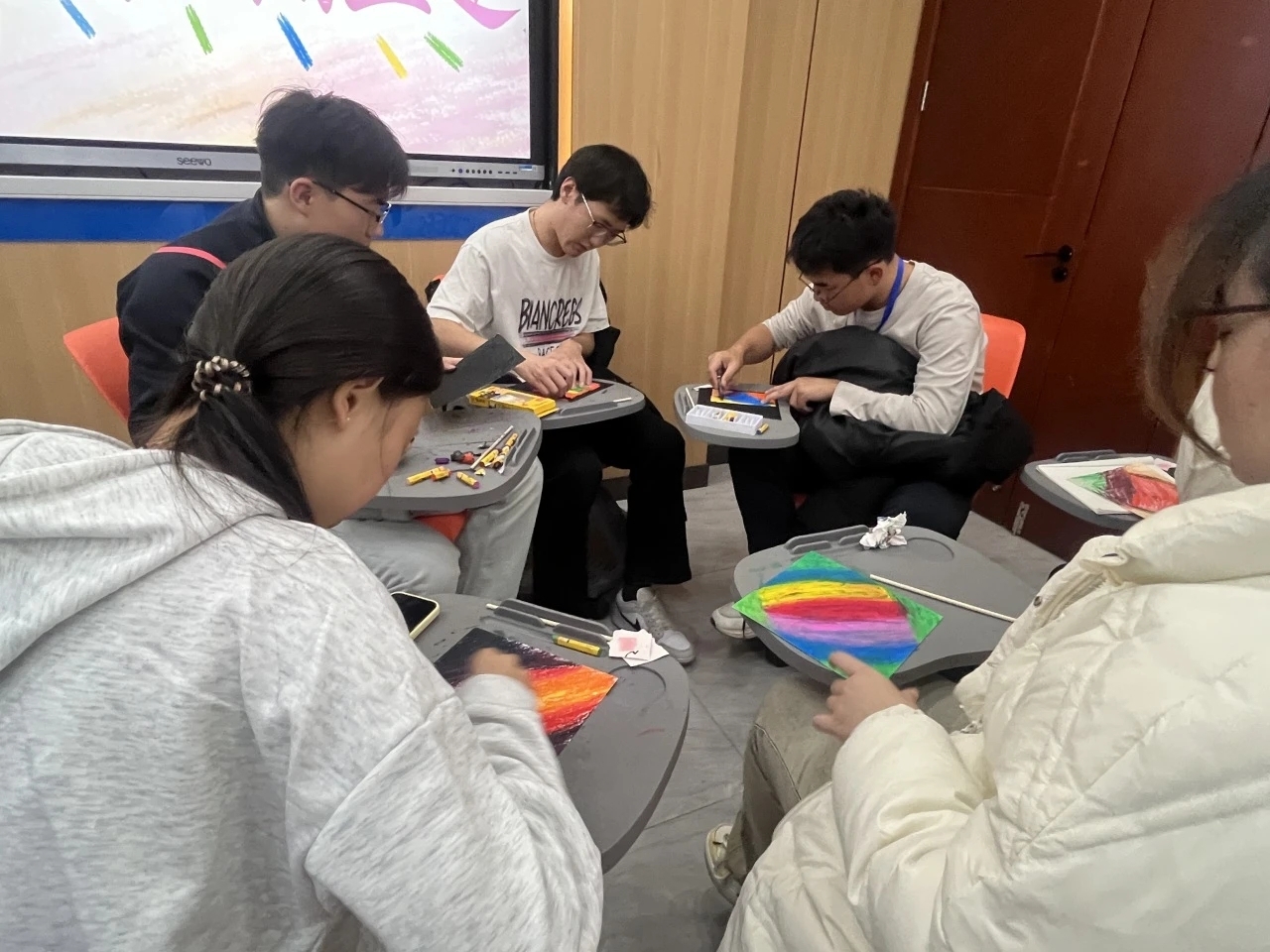 12月17日晚,VR2教室灯带调至暖黄,心理部组织的“刮彩逸情,蜡香盈趣”活动启幕——借刮蜡画“破黑见彩”的魔法,邀25级同学把期末焦虑、人际褶皱一并刮落,让心情在蜡香里重新上色。
