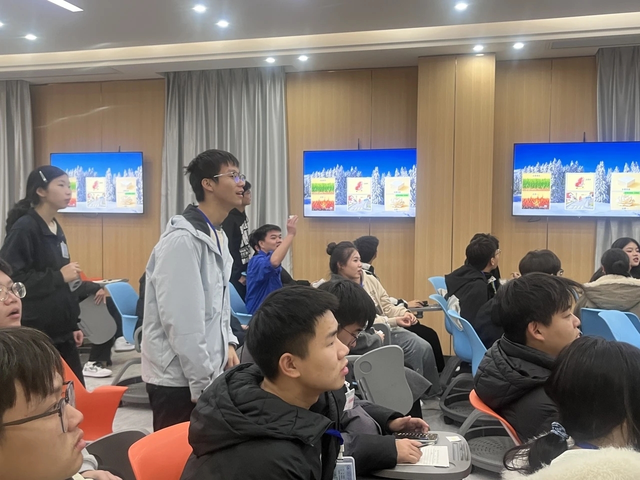 主持人先抛出一句:“今天的心情是什么颜色?”明黄、深灰、薄荷绿……同学们的心情色彩纷呈,像打翻的调色盘。分享完心情,随后进入“色彩寻宝”。每人领到一片异形“颜色碎片”,五分钟内找到同色伙伴并拼出队名,六支战队诞生。破冰“看图猜谐音”。展示的图片脑洞大开——影子上漏电的电线——“电影”;浮着闪电的大脑——“电脑”;长着红辣椒的竹子——“蜡烛”。答案意料之外,情理之中,各组纷纷抢答,笑声连片。进入刮蜡画环节。黑漆覆彩蜡,“把想删的情绪涂黑,再刮出你要的光。”沙沙声里,梯田、彩虹、闪电相继现身。分享时,一名男生把作品贴胸:“裂缝是光进来的地方。”全场安静三秒。