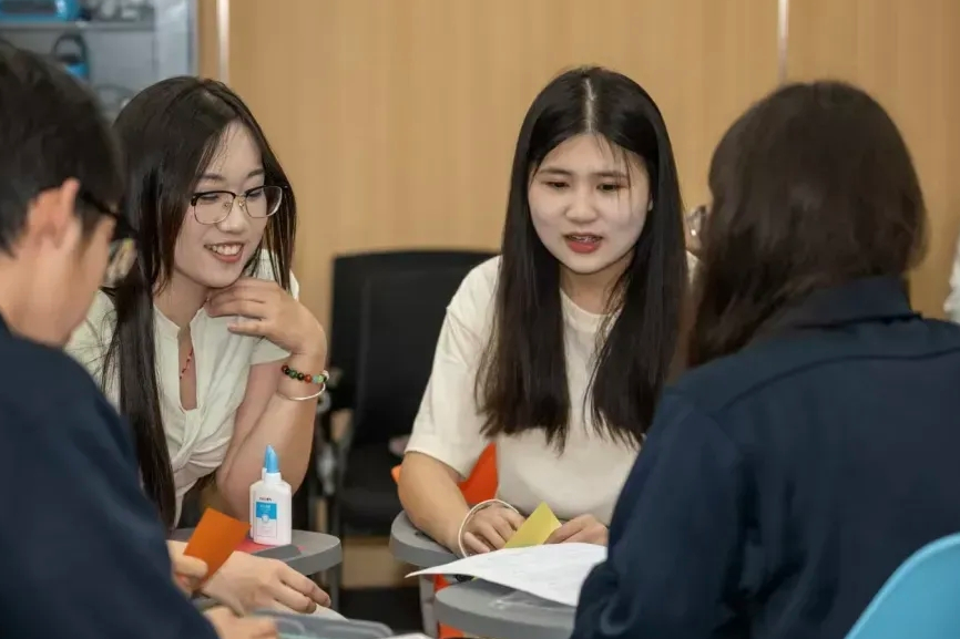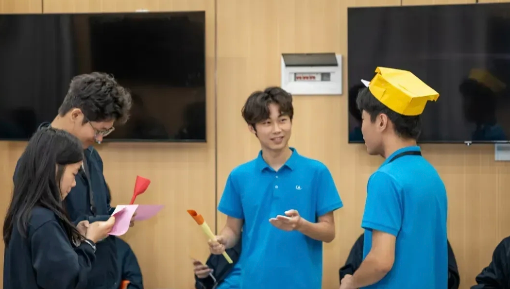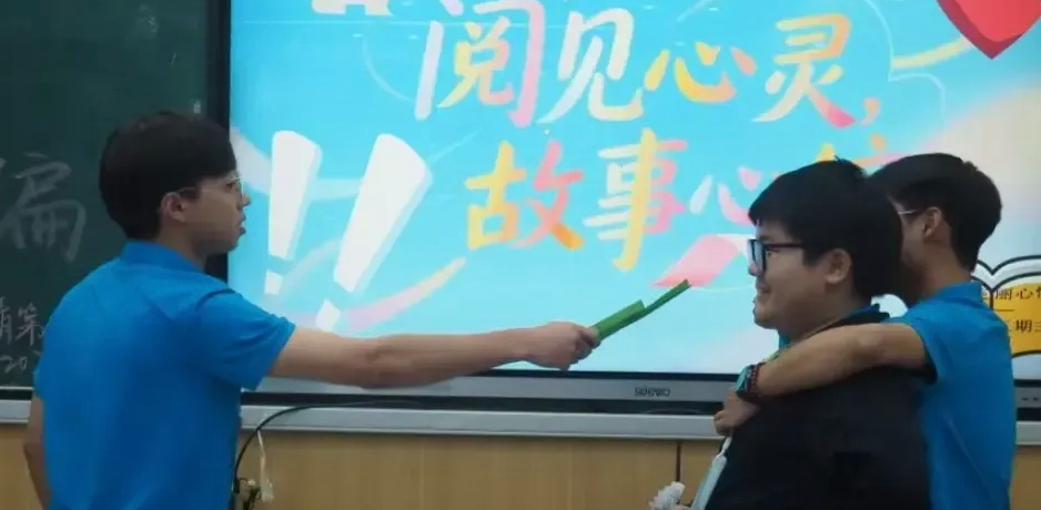 活动伊始,各小组领取卡纸、彩笔等材料,化身“手工达人”制作道具。有的用金色卡纸折出孙悟空的金箍棒,有的折出喜羊羊的标志性铃铛,还有小组用折纸拼出光头强的电锯……简陋的材料在同学们手中焕发新生,现场笑声不断。演绎环节更是‘脑洞大开’!《喜羊羊与灰太狼·双羊争美》暖心改编,喜羊羊团队用卡纸制作的青草蛋糕道具,传递"友谊需要包容"的温暖主题;《西游记·三打白骨精》被改编成“信任与沟通”心理剧,孙悟空含泪质问唐僧:“师父,你看的是妖,我看的是心。”引发全场共鸣;《熊出没·逆转时空》则加入环保主题,光头强手持纸板电锯呼吁“砍树不如种树”。 经典不仅是回忆,更是理解自我与他人的桥梁。